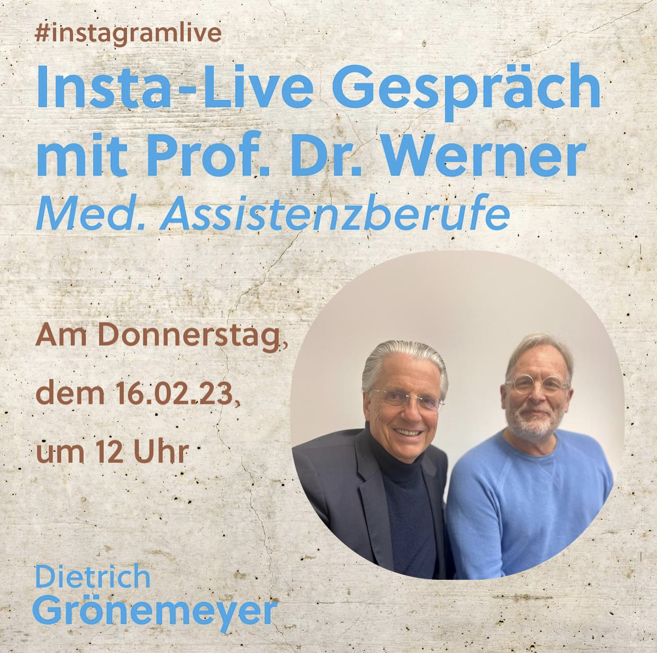 Prof. Dr. Dietrich Grönemeyer im Gespräch mit Prof. Dr. Jochen Werner im Instagram-Live.